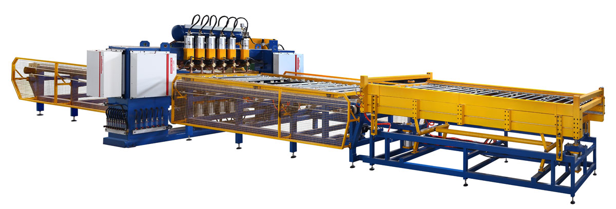 - 采用4套中頻變壓器控制6套焊接電極,保證每個焊接點焊接質(zhì)量良好.. 兩側(cè)鋼琴式焊接方式可以加快焊接速度。 每個金屬網(wǎng)格可以用一分鐘完成.